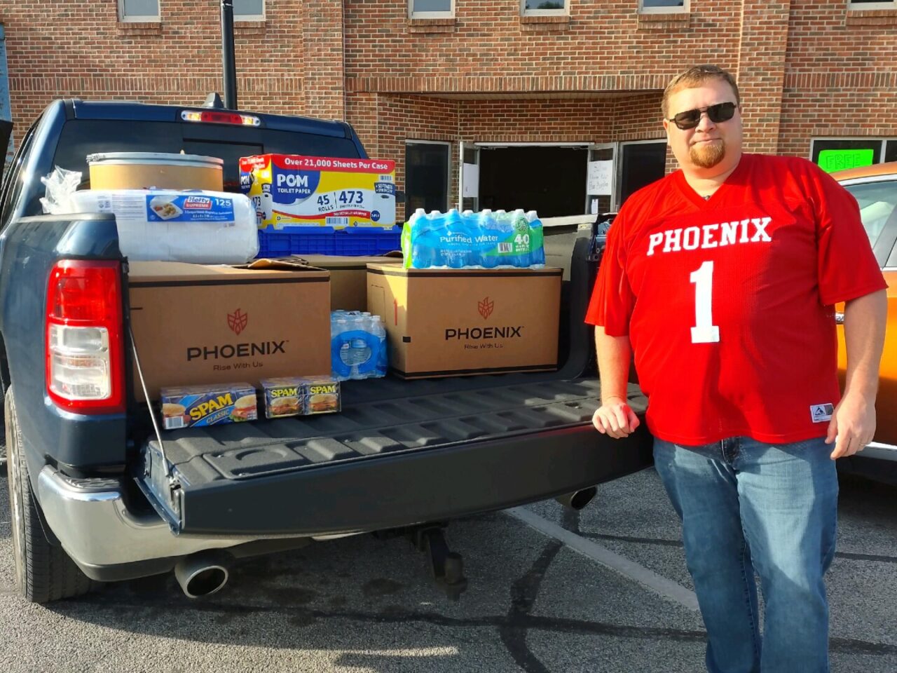 Pictured right: Bloomington Quality and Food Safety Manager, Chris Reynolds delivers supplies to assist with tornado relief efforts in Sullivan, Indiana
